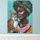 Schwarze Frau mit Katze Leinwanddruck