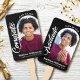 Bleibe cool und unterstütze deinen Lieblingsgrad, wenn sie ihr Diplom erhalten, mit diesem Keepake 2 Foto Handfan. Auf der Vorderseite, fett, grafisch, weiß handschriftlich "Glückwunsch" Skript-Kalligraphie und sans Serif Typografie zusammen mit einem Foto Ihrer Wahl in einem Bogen-Overlay ein dramatisch schwarzer Hintergrund. Auf der Rückseite, weiße handgeschriebene "Graduate" Skript-Kalligraphie und sans Serif Typografie, zusammen mit einem zusätzlichen benutzerdefinierten Foto, Overlay Schwarz. Personalisieren Sie den benutzerdefinierten Text mit dem Namen, der Schule und dem Unterrichtsjahr Ihres Abschlusses. Matching lädt, Dankeschön-Karten, Adressetiketten, Aufkleber und andere Abschluss-Goodies sind auch in dieser trendigen und stilvollen Kollektion erhältlich. Garantiert, um die gepflegten Erinnerungen ihres besonderen Anlasses zu erhalten! Ersetzen Sie einfach die 2 Sample-Fotos durch eigene, geben Sie den Namen, die Schule und das Klassenjahr Ihres Abschlusses ein, und Sie können diesen Keepake Abschluss Handfan ganz einfach personalisieren. Bitte schicken Sie mir eine Nachricht mit Fragen oder Wünschen.