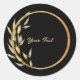 Elegante Black Gold Blätter Klassischer Rundaufkleber