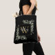 Elegante Aquarell-Blätter florale Monogramm-Namen Tote-Tasche mit einer goldenen Monogramm-Initial auf einem schwarzen Hintergrund mit Ihrem Namen Set in einem stilvollen weißen Skript. Entwickelt von Thisisnotme©