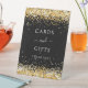 Eine schwarze Hintergrundfarbe. Dekoriert mit Imitaten Gold Glitzer Glitzern. Mit dem Text: Karten und Geschenke, danke!