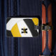 Dieses Volleyball-Gepäckanhänger ist für ein Mädchen oder einen Jungen geeignet und zeigt das realistische Bild eines abstrakt übergroßen Volleyballs, der schwarze, goldene und weiße Paneele hat - personalisieren Sie mit Spielername und Monogramm auf der Vorderseite, Adresse und Telefonnummer auf der Rückseite - von katz_d_zynes