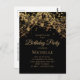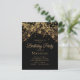 Individuell gestaltete Geburtstagsfeier-Einladung für Frauen mit glitzernden goldenen Saitenleuchten und glitzerndem Bügel auf schwarzem Hintergrund. Text, Schriftart und Wortlaut sind vollständig anpassbar. Kontaktieren Sie uns für Hilfe bei der Anpassung oder der Anpassung von Produkten.