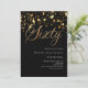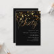 Eine moderne, stilvolle Einladung zu einer 60. Geburtstagsfeier. Schwarzer Hintergrund und das Wort Sechzig geschrieben mit großen Imitaten goldenen Buchstaben. Mit goldenen Sternen dekoriert. Personalisieren und fügen Sie einen Namen und Party-Details hinzu.