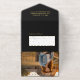 Diese Einladung zur Abschlussfeier zeichnet sich durch ein elegantes und anspruchsvolles Design mit einem dramatischen schwarzen Hintergrund aus, der durch eine elegante Goldfolientypografie akzentuiert wird. Das Layout verwendet ein modernes All-in-One-Abrissformat mit einer gewellten Oberkante und einer abtrennbaren Antwortkarte entlang der Unterseite. Ein Porträtfoto wird prominent auf der inneren Mittelklappe und auf der äußeren Mittelklappe angezeigt, umrahmt von dem reichen schwarzen Hintergrund, der die Wärme und den Glanz der Goldschrift hervorhebt. Die Typografie kombiniert eine elegante Schrift für den Namen mit sauberem, klassischem Seriftext für die Veranstaltungsdetails und schafft so ein poliertes und feierliches Aussehen. Der passende abreißbare Antwortbereich setzt das Schwarz-Gold-Thema mit minimaler, verfeinerter Formulierung fort und lässt die Einladung sowohl zeitgemäß
