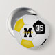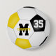 Diese Mannschaft Farben Fußball-Taste für Mädchen (oder Jungen) bietet einen traditionellen Stil Fußball-Ball mit schwarzen, goldenen und weißen Panels - anpassen Sie den Namen, Monogramm und Jersey-Nummer des Spielers - durch katz_d_zynes | Weitere Mädchen Fußball-Geschenke >>> https://www.zazzle.com/store/katz_d_zynes/products?cg=196901312156083158 | Jungen Fußball Geschenke >>> https://www.zazzle.com/store/katz_d_zynes/products?cg=196471975604901561