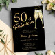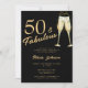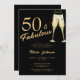 Moderne Imitate Gold trendige Kalligraphie Skript 50 und sagenhafte Jahre schwarze Geburtstagsfeier Einladung mit Champagner Flöten.