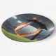 Ein Baseball mit Flammen überragt mit einer Graduationskappe, die in einem Stadion mit lebhafter Beleuchtung schweben.