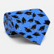 Schwarze Graduierungskappen, die in die Luft geworfen werden, machen ein schönes Design auf der modischen Accessoires-Krawatte dieses Mannes, die ein Elternteil, Lehrer oder Student für den Abschluss von der Highschool, Uni oder Universität oder zu einer Graduiertenparty nach der Abschluss-Zeremonie tragen kann. Schwarze Graduierungskappen auf blauem Hintergrund.