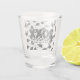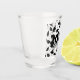 Schwarze Graduierungsklappen in der Luft auf Weiß Schnapsglas