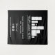 Schwarz-Weiß Hintergrund für Ihr Unternehmen mit Ihrem großen Logo und Ihrem eigenen Text. Füge deinen Social Media Handle unter den weißen Social Media Icons hinzu.