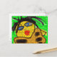Schwarze Haare Beere Frau Graffiti Wall Green Postkarte