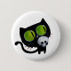 Schwarze Halloween-Katze mit dem Schädel Button