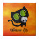 Schwarze Halloween-Katze mit dem Schädel Fliese
