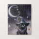 Schwarze Halloween-Katze mit einem Hexenhut Puzzle