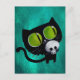 Schwarze Halloween-Katze mit Schädel Postkarte