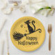 Schwarze Hexenkatze auf Broomstick Halloween Pappteller