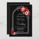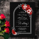 Laden Sie Ihre Freunde und Liebsten zu Ihrer Hochzeit mit dieser modernen roten Blumen Schwarz-Weiß-Bogen-Einladung ein.