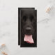 Das Portrait des schwarzen Hundes mit der Zunge nah. Fotografie.