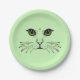 Schwarze Illustration von Katzengesicht Grüne Auge Pappteller