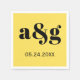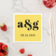 Schwarze Initialen Typografie auf gelben Hochzeitsferkel Serviette. Es koordiniert mit unserer "Vintagen Gelbjasminensammlung"-Kollektion.