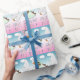 Dieser niedliche schwarze Junge u. Mädchen paart Baby-Duschen-Verpackungs-Papiereigenschaften ein blauer, weißer und rosa Hintergrund, Wolken und ein Storch, der schwarzen Zwilling tragen, ein Babyjunge und ein Babymädchen. Die Babys haben blondes Haar und Schnuller in einer hellgrünen Decke mit grüner Druckdecke. Das Baby hat ein grünes Haarband. Dekorativer Text ist Babyparty, es ist Zwillinge! Vervollkommnen Sie für die Verpackung der Babyparty-Geschenke. Wählen Sie Ihre Medien und Größe des Packpapiers.
