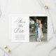 hübsche weiße Schriftbeschriftung schwarze Hochzeit rettet das Datum Hochzeitskarte. Der Text und die Farben können bearbeitet werden.
