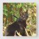 Schwarze Katze am Morgen Sonnenmauer Uhr