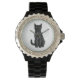 Uhr, Klassische Damenuhr mit schwarzen Lederarmband