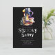 Schwarze Katze auf Büchern mit Portion Halloween Einladung