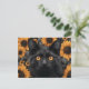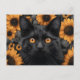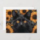 Schwarze Katze auf dem Sonnenblumenfeld Postkarte