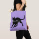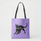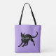 Silhouette einer schwarzen Katze des kurzen Haares, die von der Seite mit seinen Ohren oben und Kopf angesehen wurde, wendete sich an die Front. Der Schwanz wird oben in einer playful Lage gekräuselt. Ihr Name oder Wahl der Textanzeigen über der Mitte in einem hübschen weißen Skript. Dargestellt auf einer Lavendelhintergrund-Farbwahl. Grafik und Entwurf durch Karlajkitty