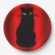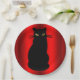 Schwarze Katze auf Rot Pappteller