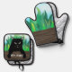 Schwarze Katze auf Zaun Oven Mitt & Pot Holder Set