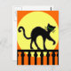 Schwarze Katze auf Zaun-Postkarte Postkarte