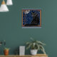 Schwarze Katze Blick auf Mond und Sterne Poster