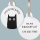 Ein lustiges, schwarzes Katzendesign mit einer seriösen Nachricht für Katzen in Innenräumen, die zu entkommen neigen. Text auf der Vorderseite liest ich entkommen. Text auf der Rückseite liest, ich bin eine Innenkatze, mit Ihrer Telefonnummer. Ändern Sie den Text und die Kontaktinformationen, um sie zu personalisieren. Originelle Kunst von Nic Squirrell.
