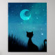Schwarze Katze funkelt Sternenhimmel moderne Illus Poster