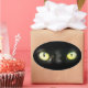 Schüchterne, aber spurige und geheimnisvolle Katzenaugen. Schwarze Katze mit weicher Pelzfarbe Textur, Hellgelbe, grüne Zelliadonaugen, die Sie anstarren. Feiern Sie Halloween, oder genießen Sie einfach das Geheimnis der dunklen Feline mit schillernden Augen.
