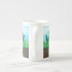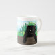Freddie Hanging ist Teil meiner Katzenthemed-Sammlung, die von Nicht-anderem als meinem wunderschönen Furry-Freund inspiriert wird! Dies ist eine Knochenkatze-Tasse, die eine Schwarze Katze mit Pfoten über einem Holzzaun mit Gras im Hintergrund und einem blauen Himmel darstellt.