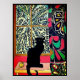 Chat noir, schwarze Katze im Fenster mit Palme, Hommage an Matisse.