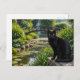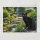 Schwarze Katze im Garten Postkarte