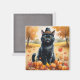 Schwarze Katze im Herbst hinterlässt Erntedank Kun Magnet