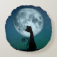 Schwarze Katze im Mondlicht Rundwurfkissen Rundes Kissen