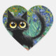 Schwarze Katze im Skittisch in einem Lila Irischen Herz-Aufkleber