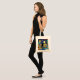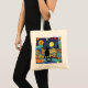 A.I.made print einer schwarzen Katze sitzt prominent auf einer farbenprächtigen, geometrischen Stadtbild unter einem sternförmigen Nachthimmel mit verschiedenen Himmelskörpern. .