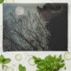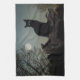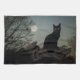 Schwarze Katze in einem Baum vor Vollmond Geschirrtuch