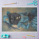 Dieses Papier zeigt Kunst mit einer langen, haarigen schwarzen Katze in einem extravagant blauen Kleid aus meiner Regal Felines Serie.