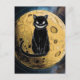Schwarze Katze lächelt auf dem Mond Postkarte