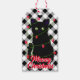 Schwarze Katze Meowy Weihnachtsblitz Gingham Geschenkanhänger